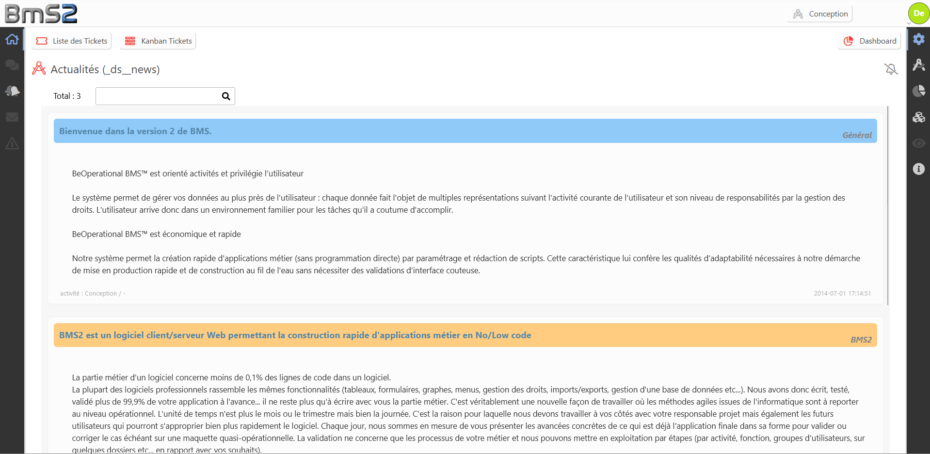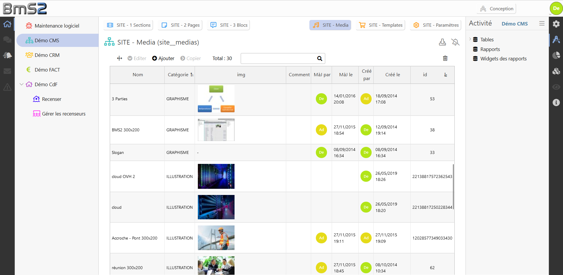 BMS2 est un logiciel client/serveur Web permettant la construction rapide d'applications métier en No/Low code