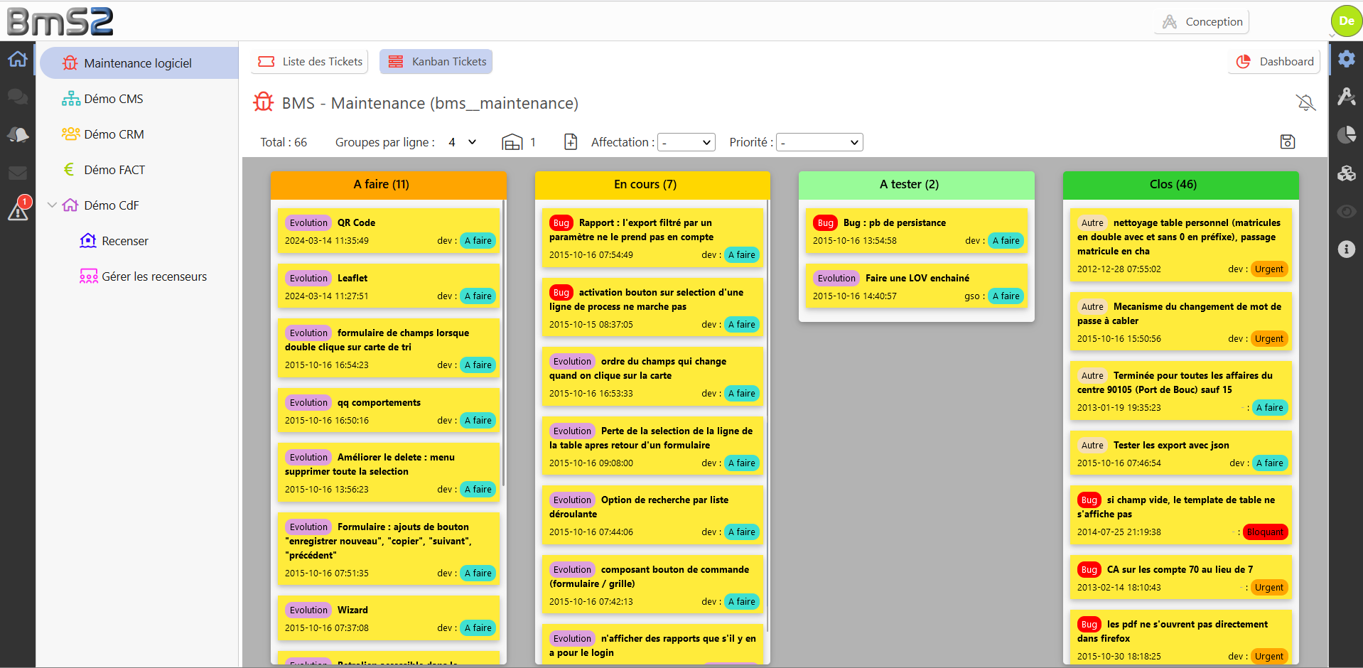 Vos données peuvent évoluer, votre organisation des tâches et du travail peuvent évoluer, vous pouvez ajouter de nouvelles activités... BMS est conçu pour s'adapter à vos changements sans nécessiter de longs et couteux redéveloppements.