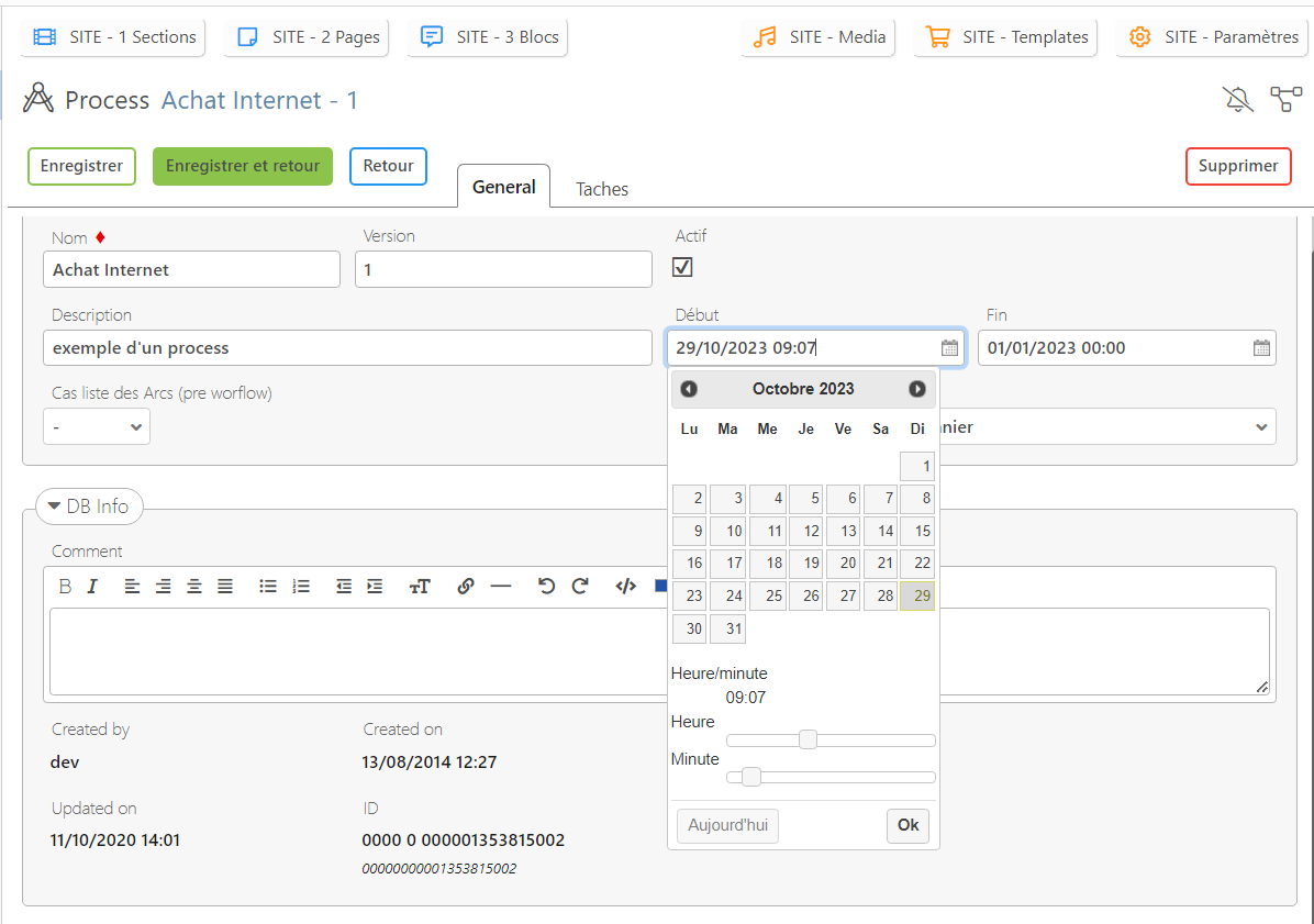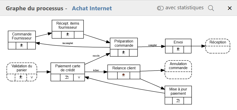 • création de processus (workflow graphique) et suivi d'activité dans le workflow