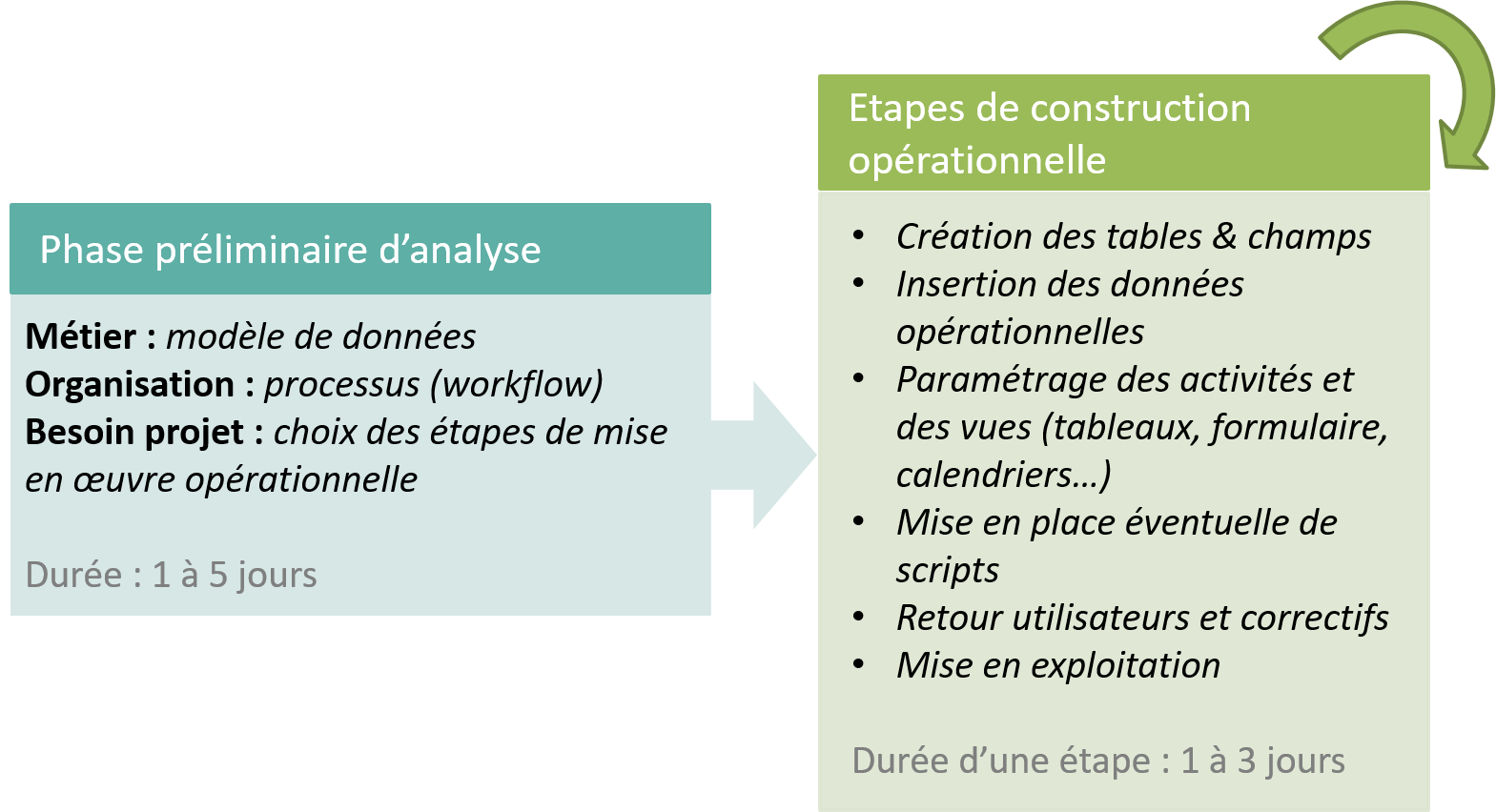 BeOperational propose souvent une première version opérationnelle en une semaine et les évolutions se font en exploitation (rappelez vous : 99,9% du logiciel est déjà écrit et validé)